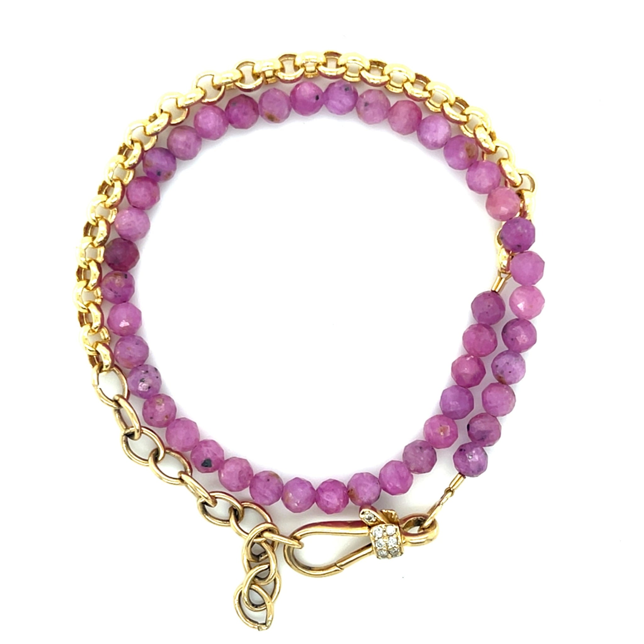 Stylish and stunning Pink Tourmaline wrap bead bracelet with extension chain detail, 14"L. Also available in Green Onyx