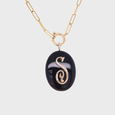Large Oval Cabochon Monogram Pendant-Black Onyx