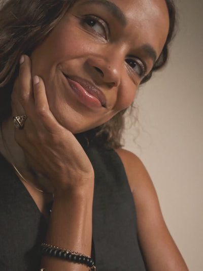 Handcrafted with Black Onyx beads, this piece represents a stylish, elevated take on the beloved beaded stretch bracelet. Detachable puffy heart allows you to customize your look. Perfect for everyday wear, it’s a fun way to add a touch of whimsical sophistication to your ensemble.